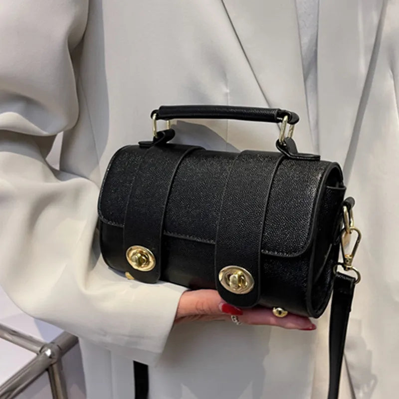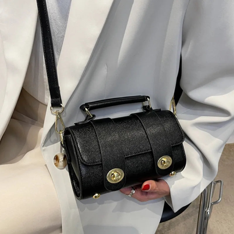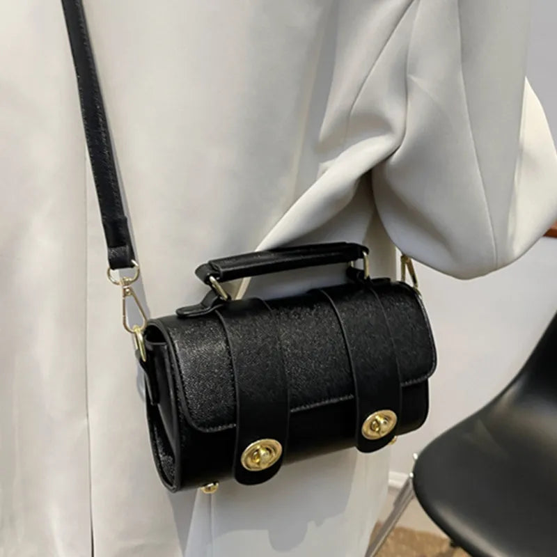 This women's shoulder bag is made of high-quality leather and features a top handle and crossbody design. It is ideal for casual use and has a small flap for added style.