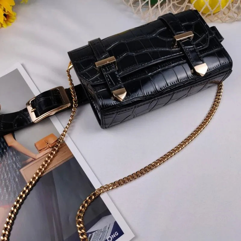 Stay stylish and hands-free with this women's waist pack. Made of high-quality leather, this waist belt bag features a serpentine design that adds a touch of elegance to your outfit. Perfect for casual outings or running errands, this pack can hold your phone and other essentials securely.