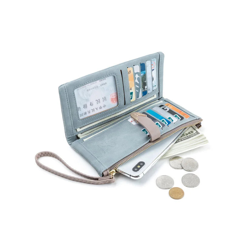 Stay stylish with this pretty lady's purse featuring a wrist band. Made from high-quality PU material, this wallet is perfect for daily use.