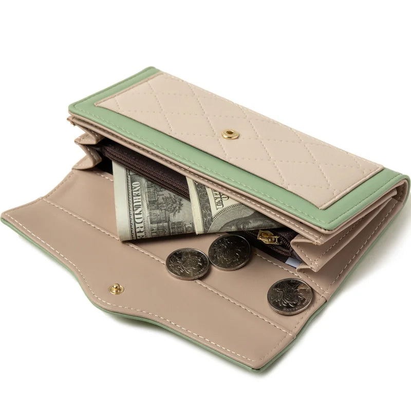 Women's Long PU Leather Buckle Wallet Three fold Bag