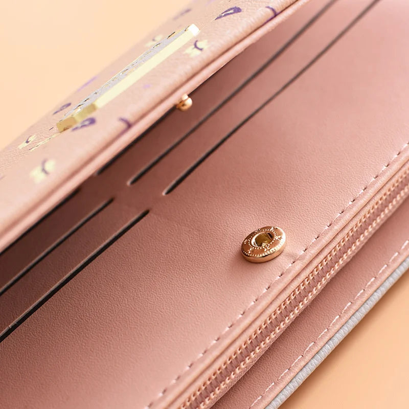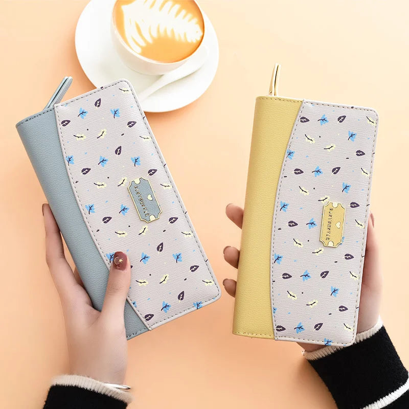 This wallet is perfect for students or anyone on the go. It features a broken flowers design and three-fold style.