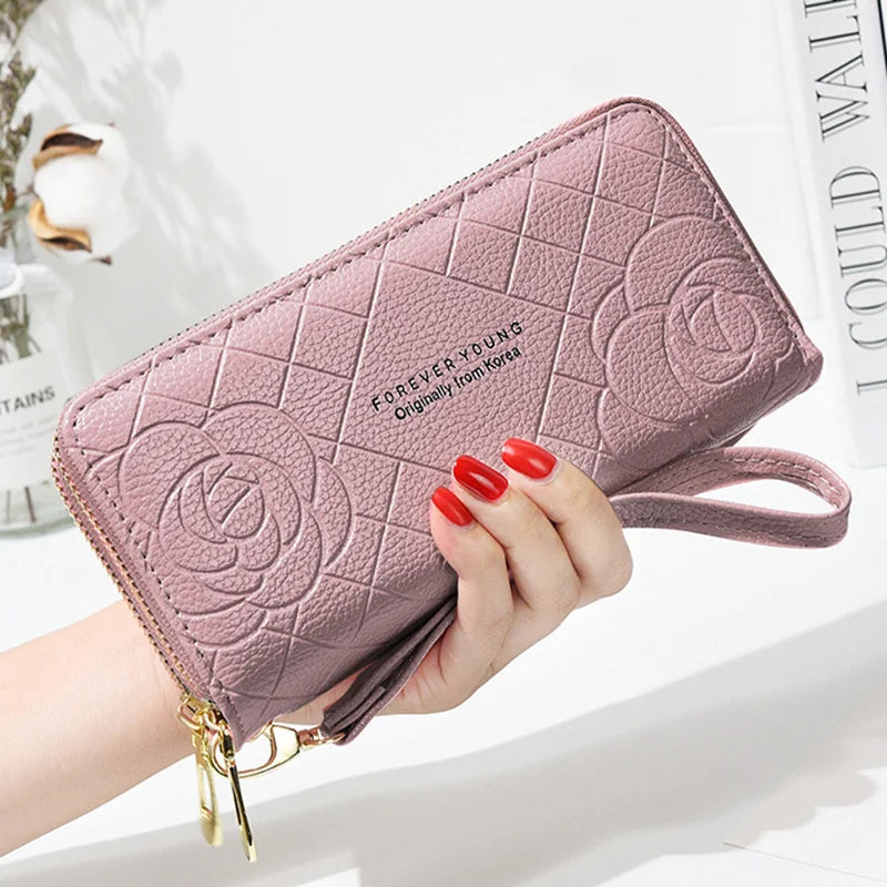 Women's Long Wallet with Wrist Strap, Double Zipper