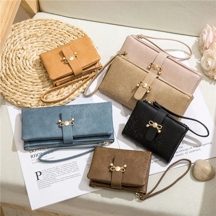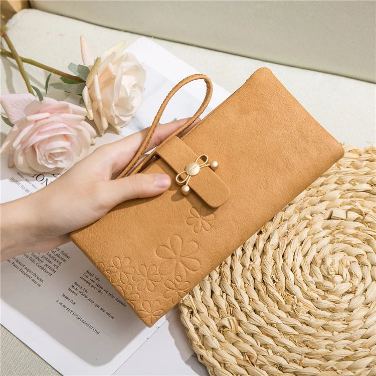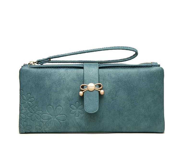 Women's Long Wallet Zipper Card Bag with Wrist Strap