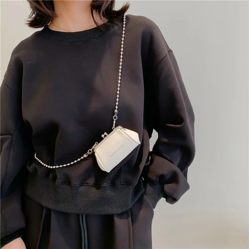 This stylish mini chain shoulder bag is perfect for parties and special occasions. It features a chic orange color and a convenient kiss lock closure. The compact size makes it easy to carry while still fitting all your essentials.