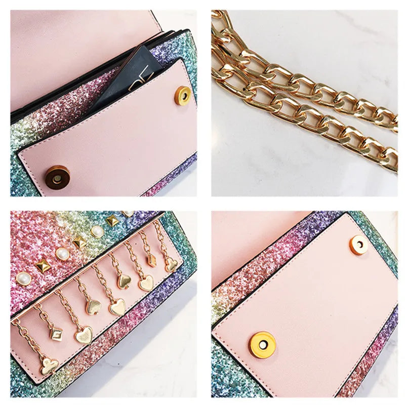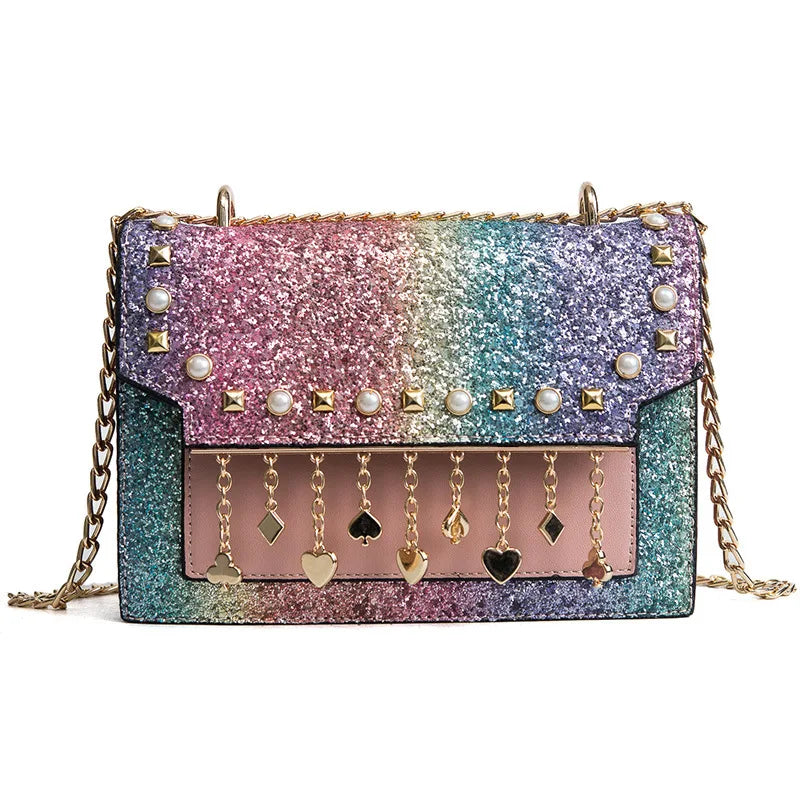 Description:This small shoulder bag is perfect for casual outings. Featuring pearl and sequin embellishments, it adds a touch of elegance to your look. Made of high-quality leather, this bag is durable and stylish.Features: Small shoulder bag with pearl and sequin details Stylish chain crossbody design for a trendy look Made...