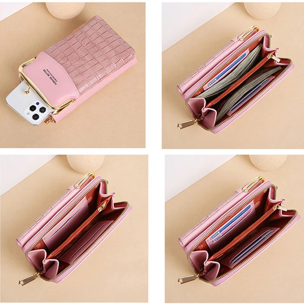 Stay organized on-the-go with this versatile phone purse that doubles as a clutch wallet. Perfect for carrying your phone, cash, cards, and other essentials while out and about.
