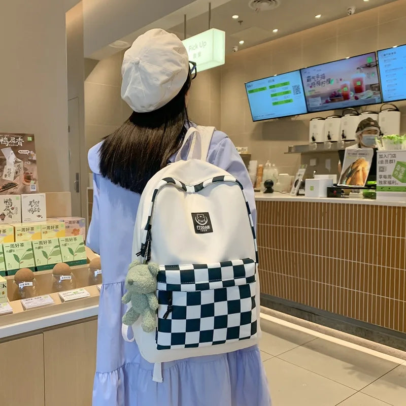 Women's Plaid Harajuku Backpack Laptop College Bag