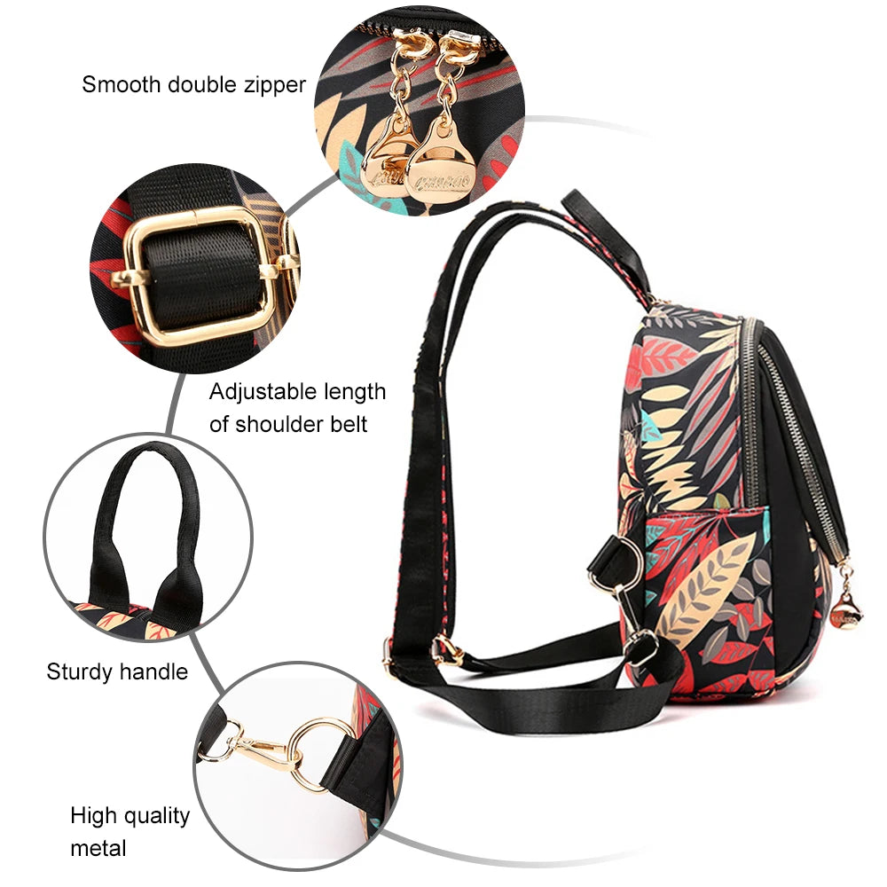 This versatile bag can be used as a backpack, shoulder bag, or cross-body bag. It features a vibrant print design and a spacious interior for all your essentials.