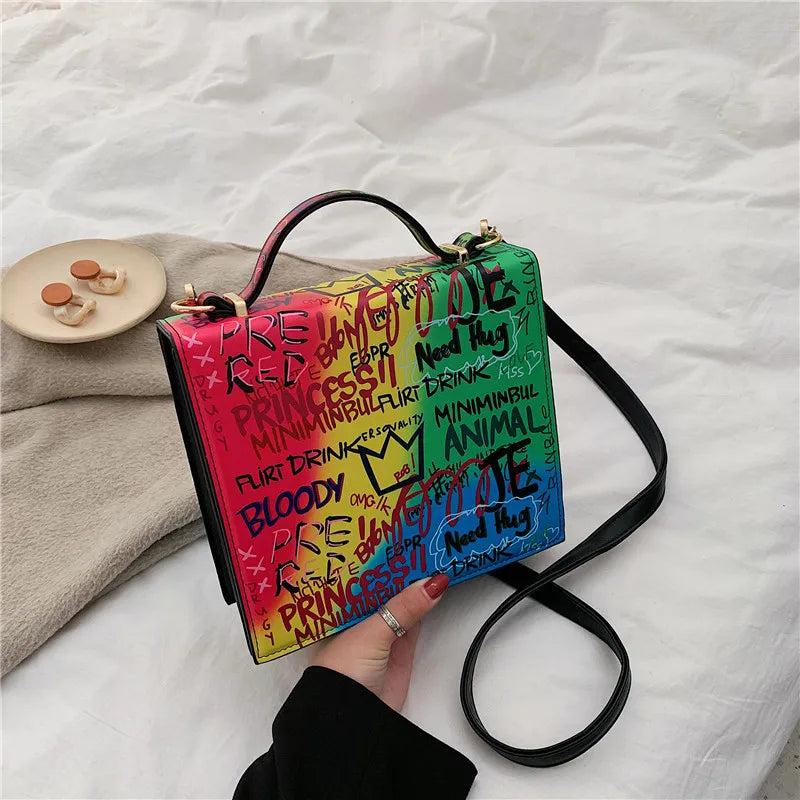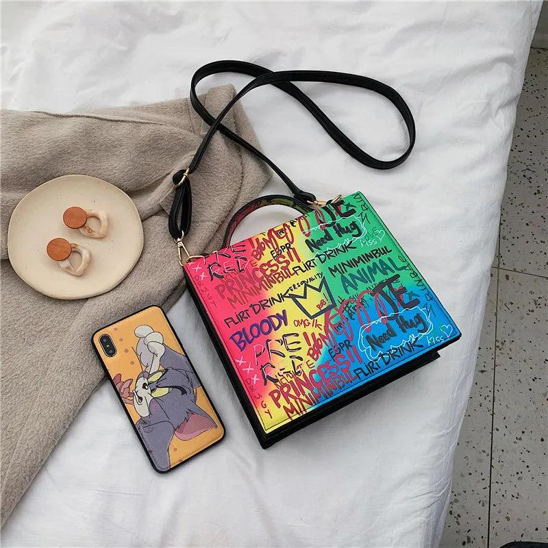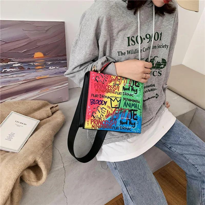 Stay stylish with this creative tote bag featuring a printed letters design. This shoulder bag is perfect for adding a touch of creativity to your outfit.