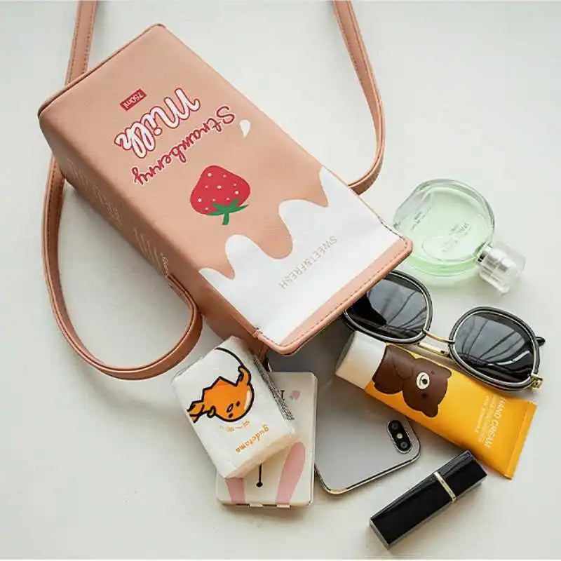 This trendy mobile phone bag is a must-have accessory for women. Made of high-quality PU material, it is designed with a creative milk box shape, perfect for carrying your phone, cosmetics, and other small essentials.