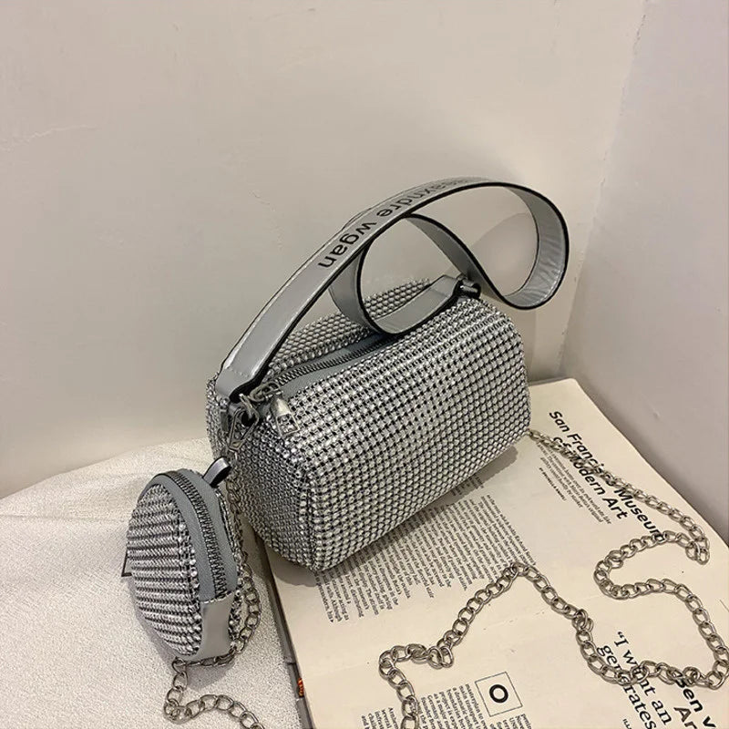 Women's Rhinestone Shoulder Bag with Large Capacity and Mini Pouch