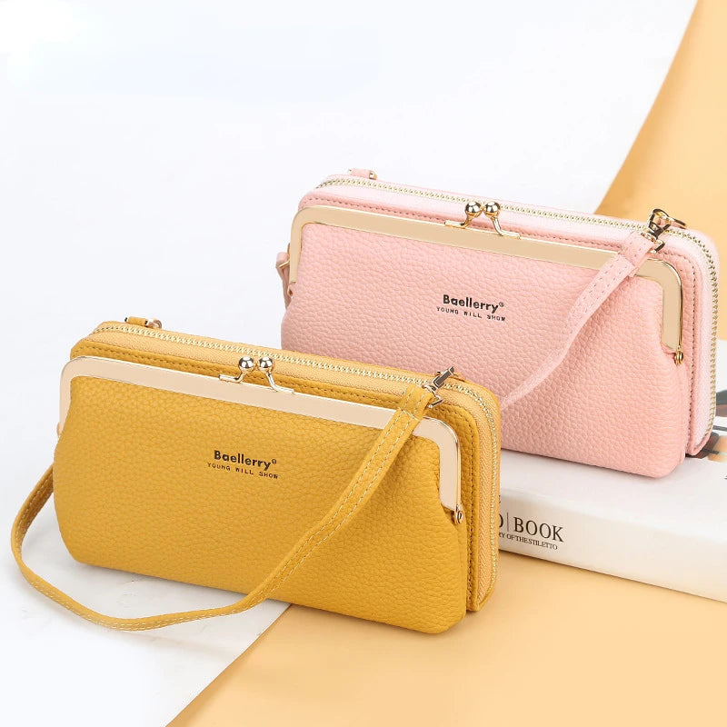 - Includes shoulder bag, crossbody bag, long wallet, coin purse