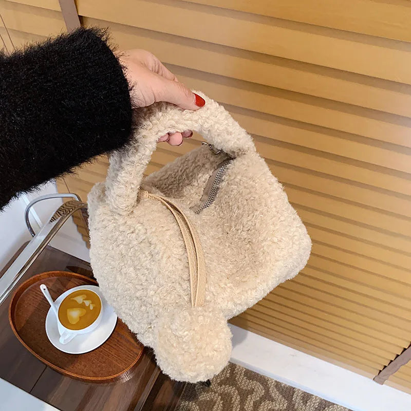Stay fashionable and chic with this winter-ready small bag made of lamb velvet. Perfect for carrying essentials on the go.