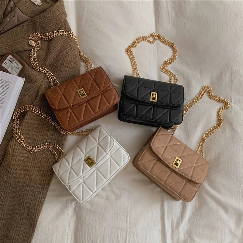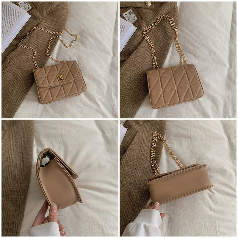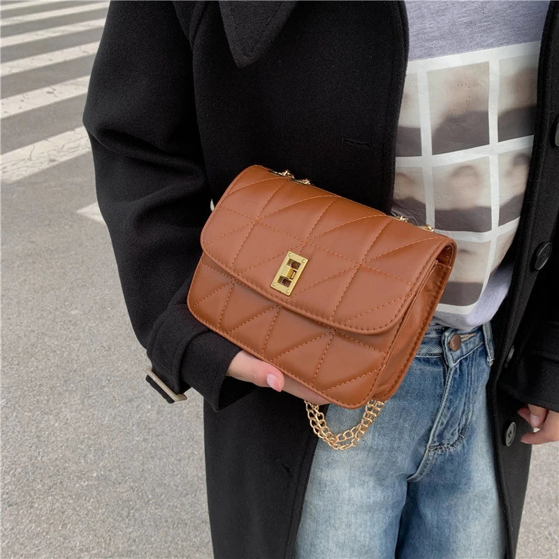 Women's Small Shoulder Bag with Chain Strap PU Leather Crossbody Brown