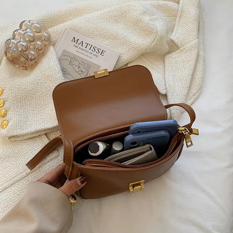 This women's bag is made of PU leather with a soft texture. It can be worn as a shoulder bag or crossbody, perfect for everyday use.