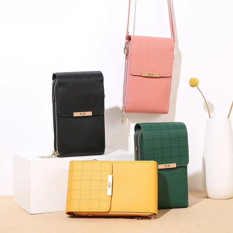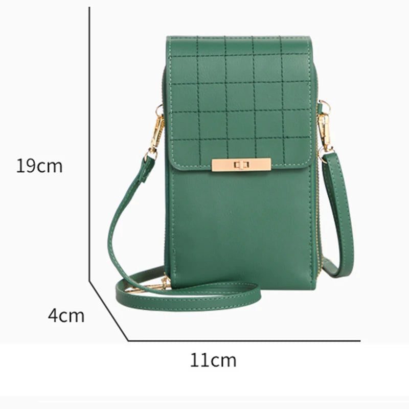 This versatile bag is made of pure soft leather and features a transparent touch screen panel for easy phone access. It can be used as a single shoulder purse or a messenger wallet for women.