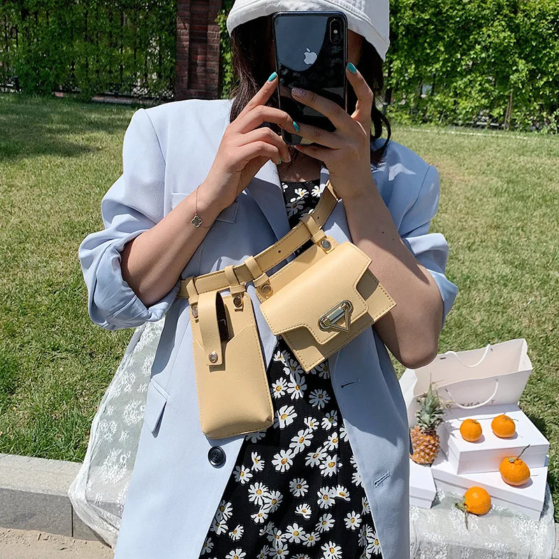 Women's Two-piece Waist Bag Tactical Belt Bag Fashionable Leather Belt Bag