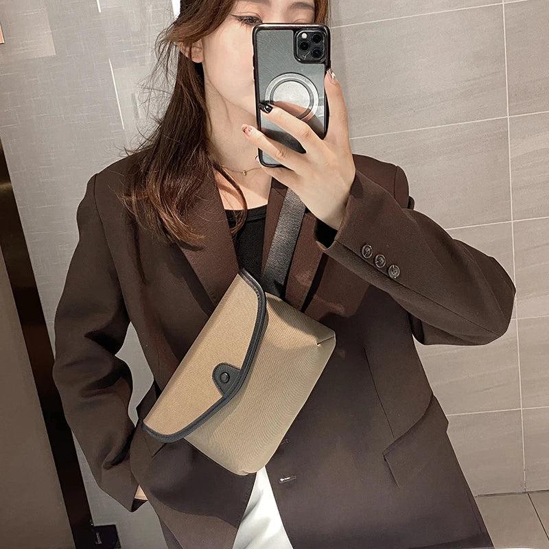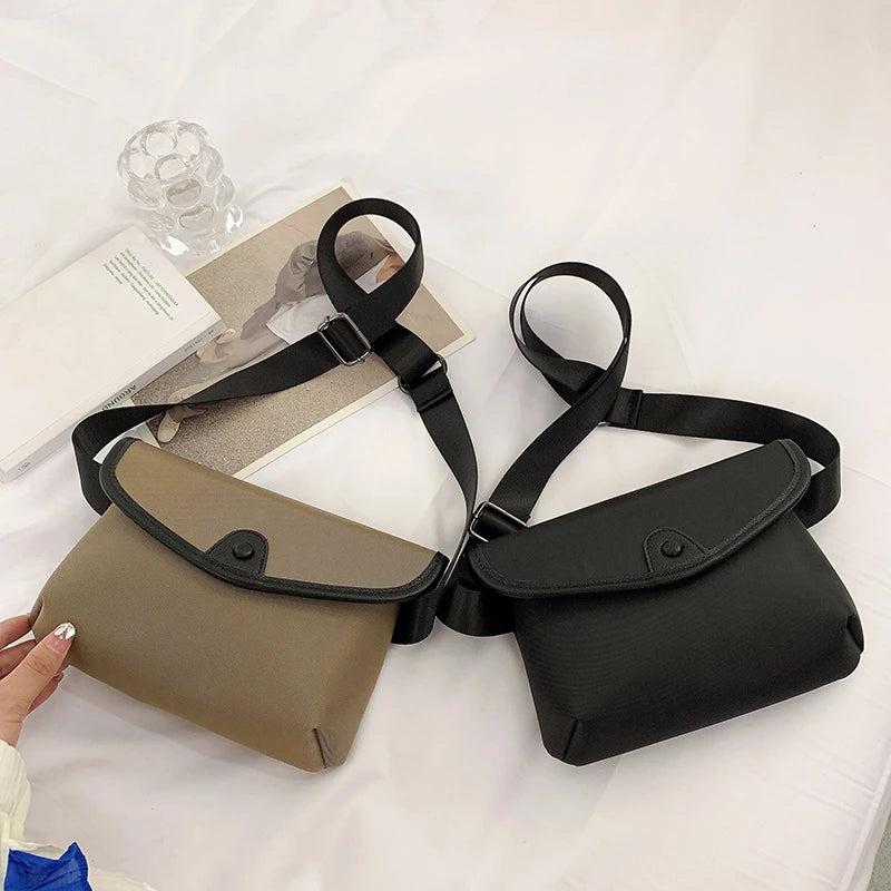 This women's waist bag is made of nylon canvas, ideal for casual travel. It features a crossbody chest bag design, perfect for carrying essentials.