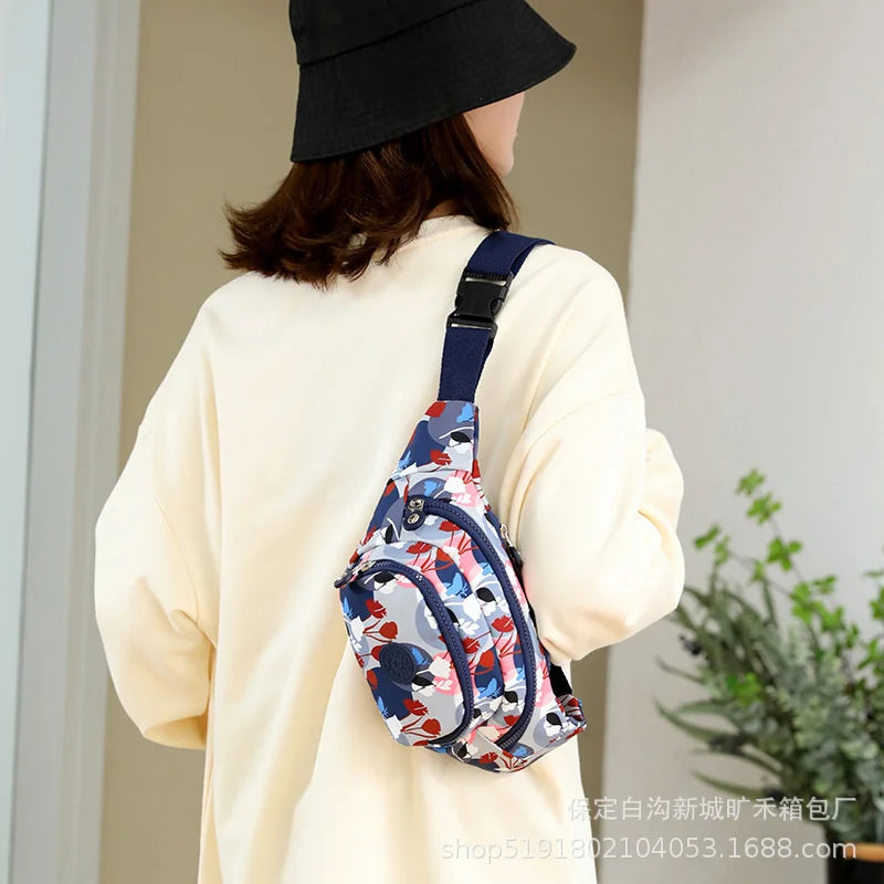 Women's Waist Bag Printing Large Capacity Nylon Cloth Storage Chest Bag