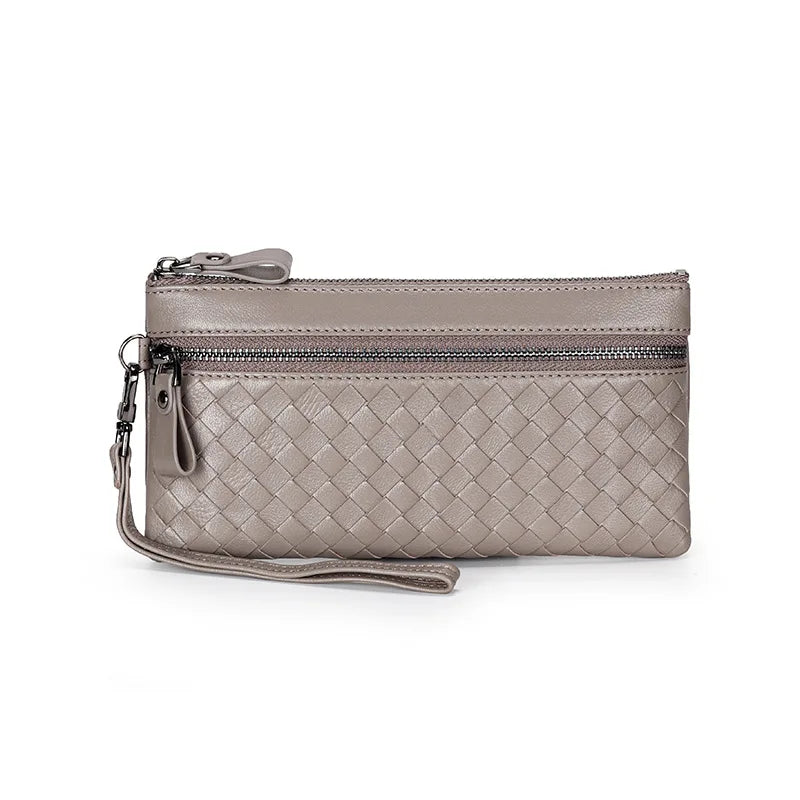 Women's Woven Leather Clutch Wallet RFID Long Purse
