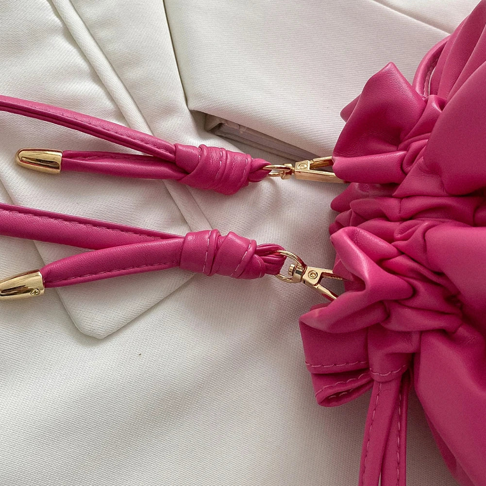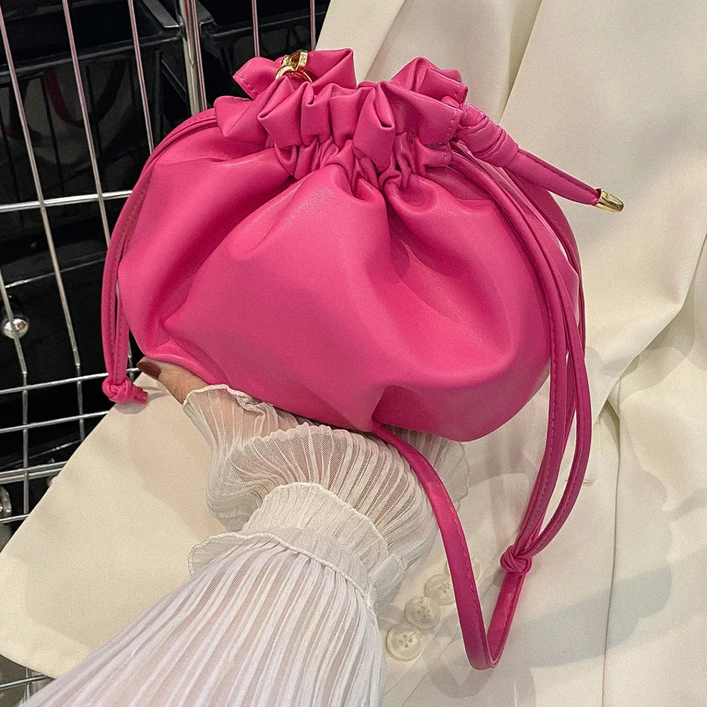 Y2K Style Women Shoulder Bag Leather Drawstring Purse Hand Bags