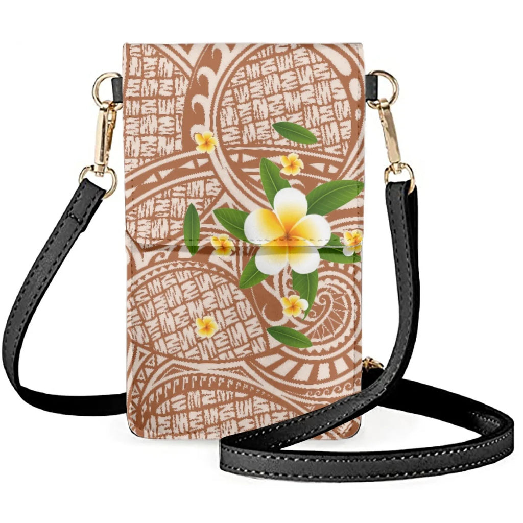 Description:Carry your essentials in style with this beautiful Yellow Frangipani Leather Phone Bag featuring a Polynesian pattern. Perfect for everyday use or special occasions.Features: High-quality leather construction Polynesian pattern design Universal shoulder bag for women Great for carrying essentials Ideal for casual or formal occasions This product may be available...