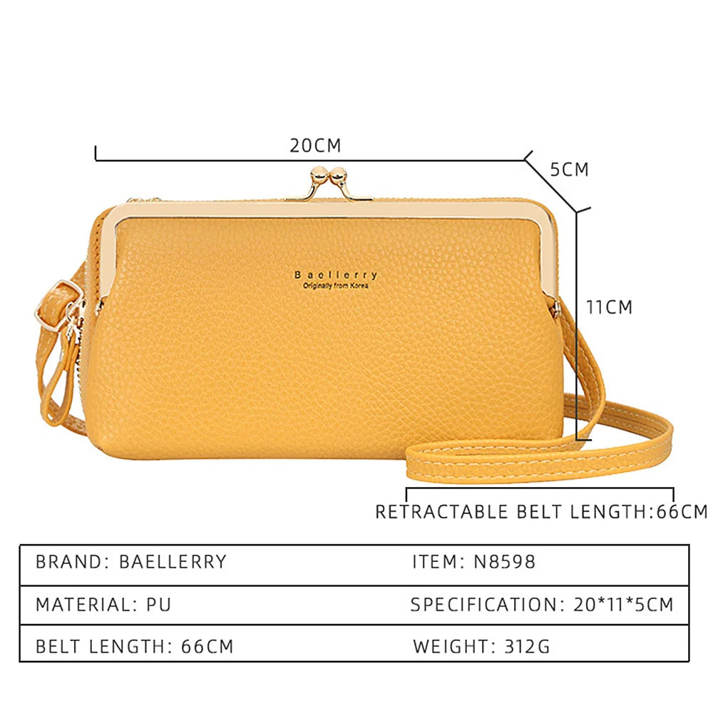 Stay stylish and organized with this small yellow women's bag featuring a top phone pocket. Perfect for girls on the go.