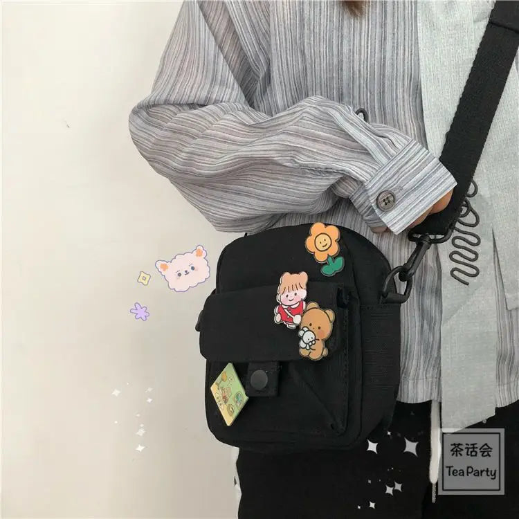 This small crossbody bag is perfect for student girls with its cute Japanese Harajuku cartoon style. Ideal for carrying a cellphone, wallet, and other essentials.