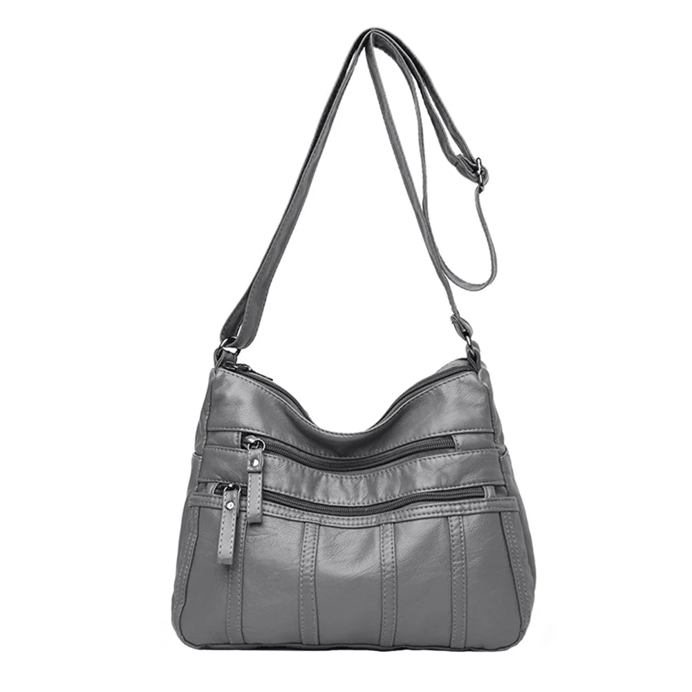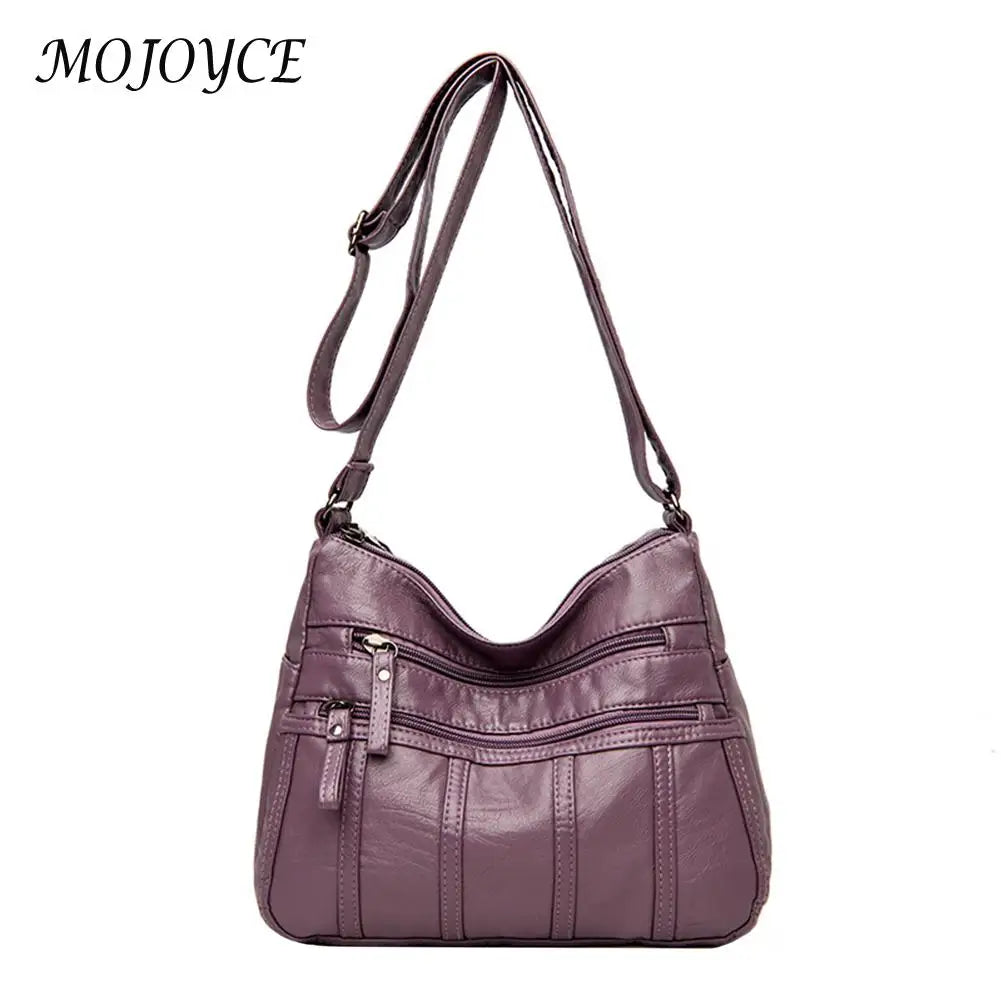 Youth Ladies PU Leather Shoulder Bag Multi-pocket Zipper Design