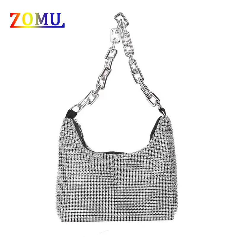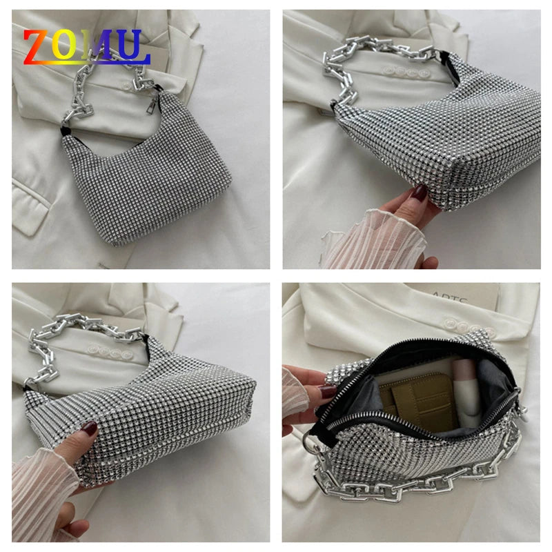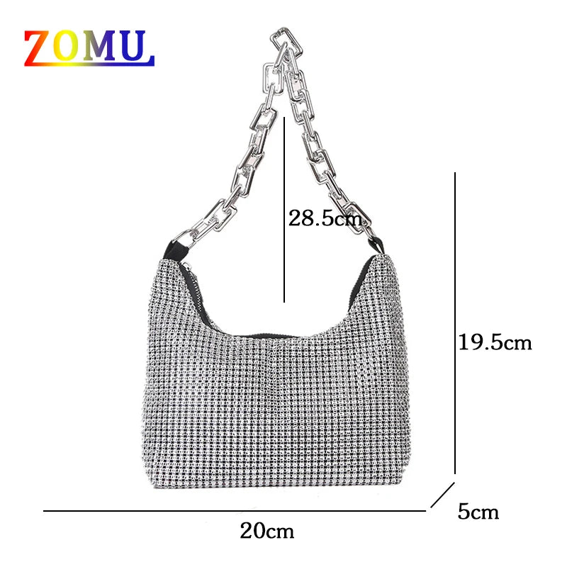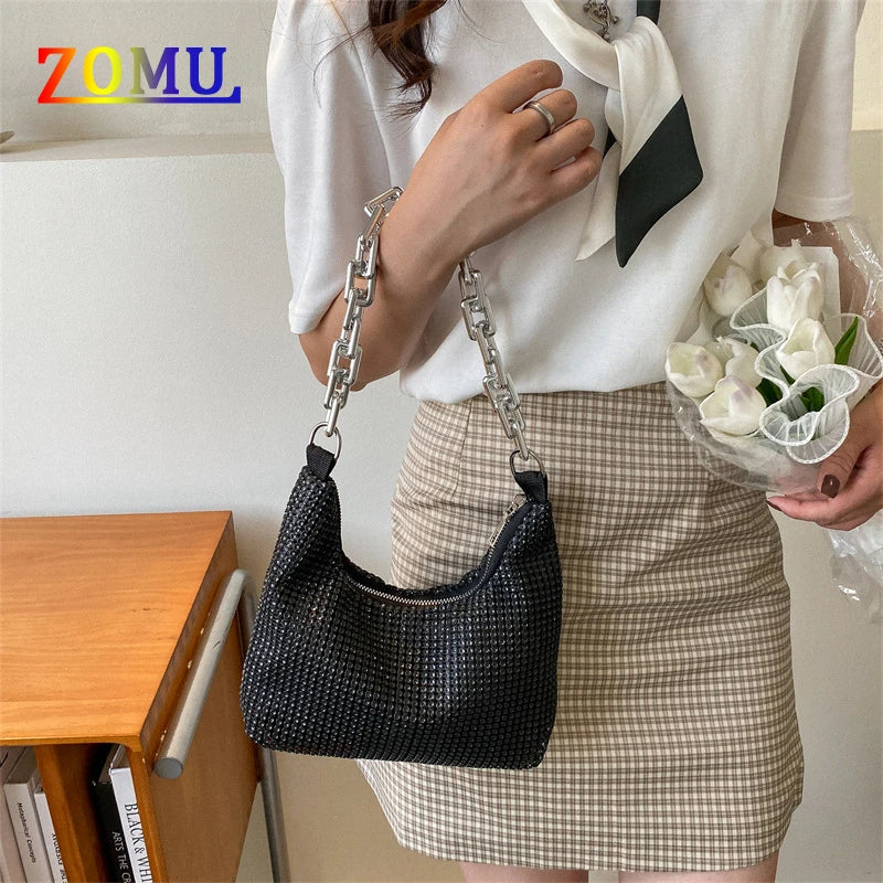 ZOMU Full Rhinestone Shoulder Bag PU Messenger Bag Ladies Tote Bag