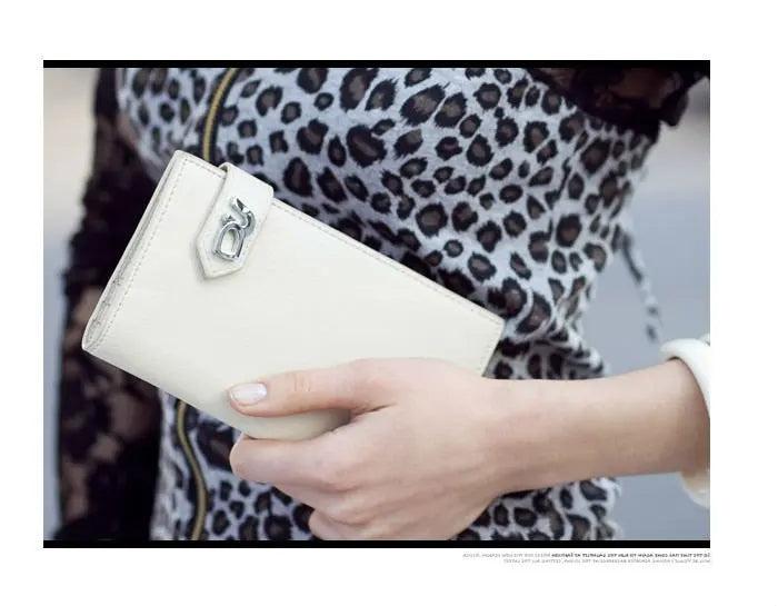 This beige leather wallet/purse is a stylish and functional accessory. It features a zip-around closure and multiple card slots, cash compartments, and a zip coin pocket.
