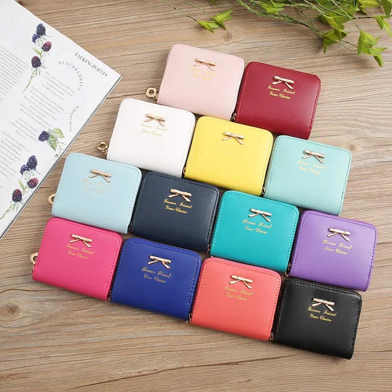 Bow Women Small Leather Wallets Zipper Purses Girls Lady Purse