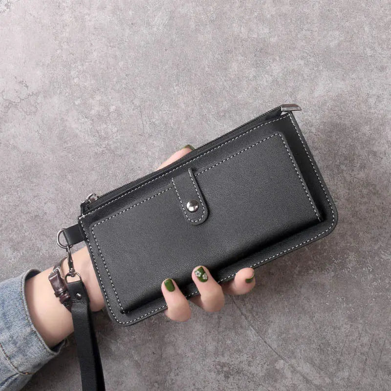 Stay organized with this portable money bag made of PU leather. Features multiple card slots, hasp closure, and a foldable design for easy storage.