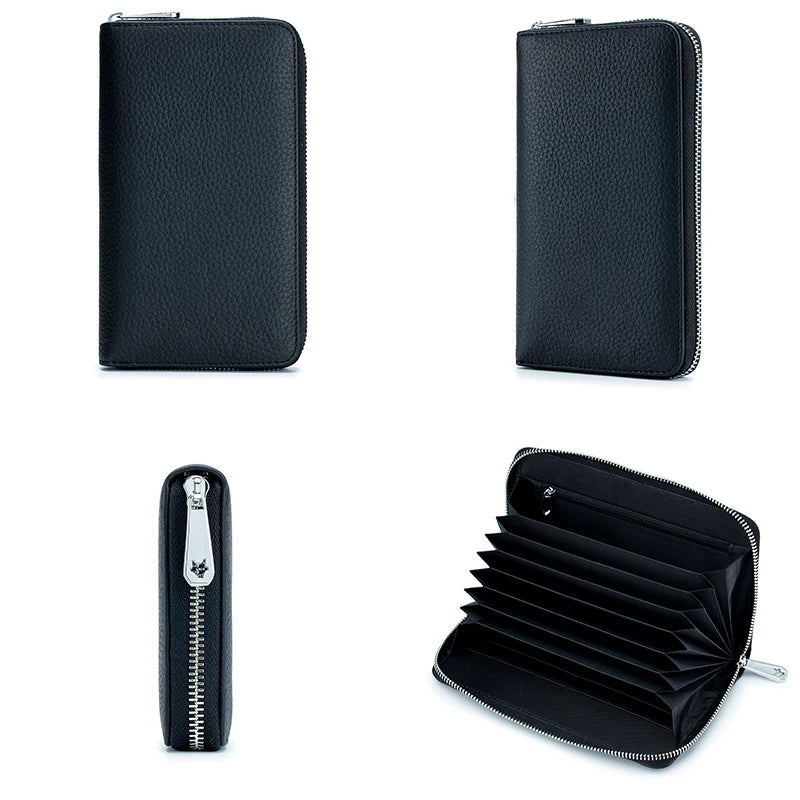 Stay organized with this stylish and functional wallet clutch bag featuring a zipper closure. It has a long billfold section for bankbook and ledger, and RFID protection to keep your information safe.