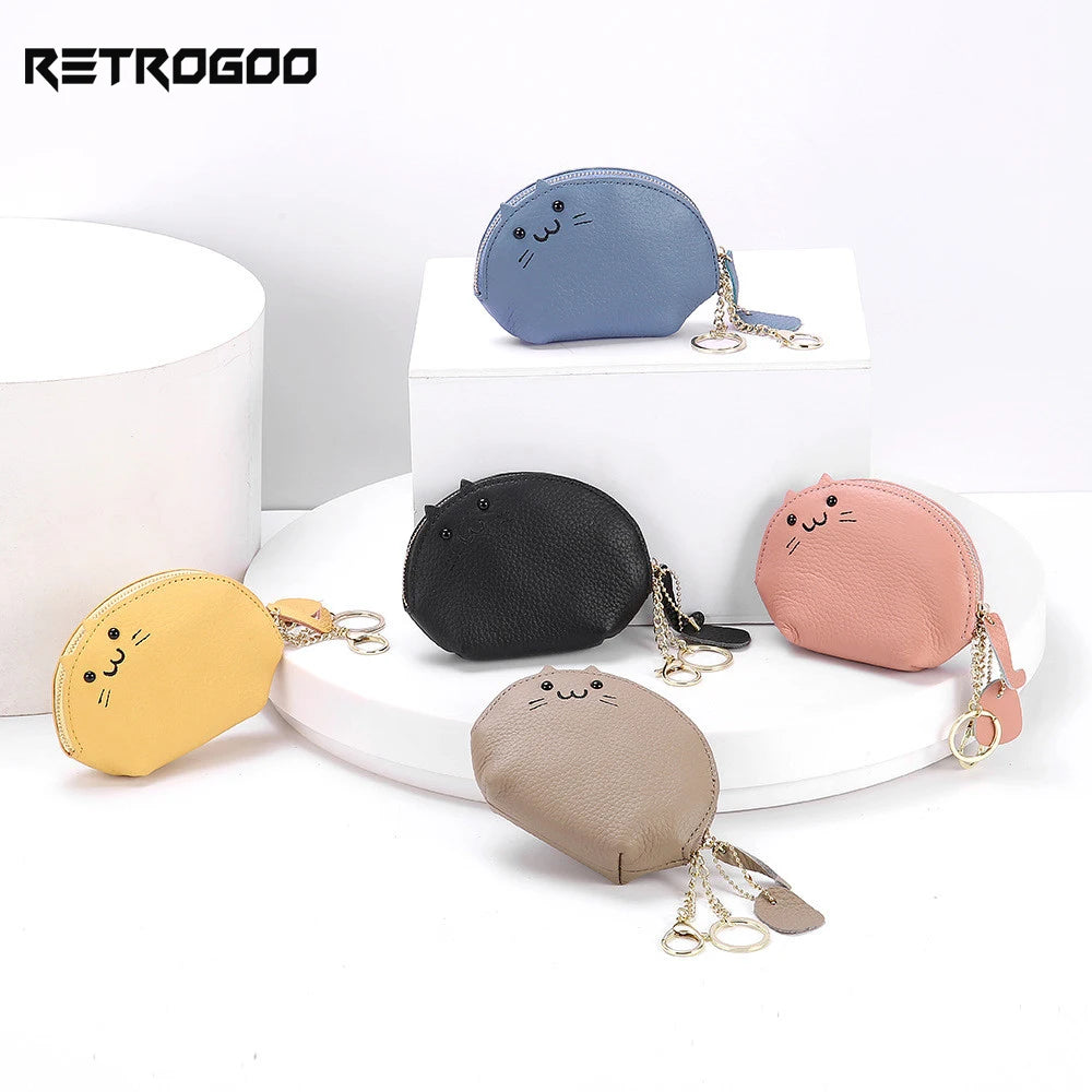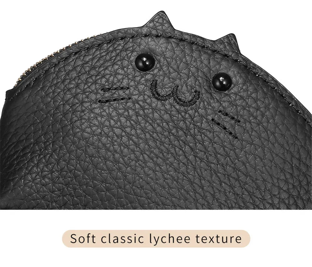 Adorable cartoon cat design coin purse keychain wallet made of leather, perfect for storing coins, lipstick, and other small items. Ideal gift for girls.