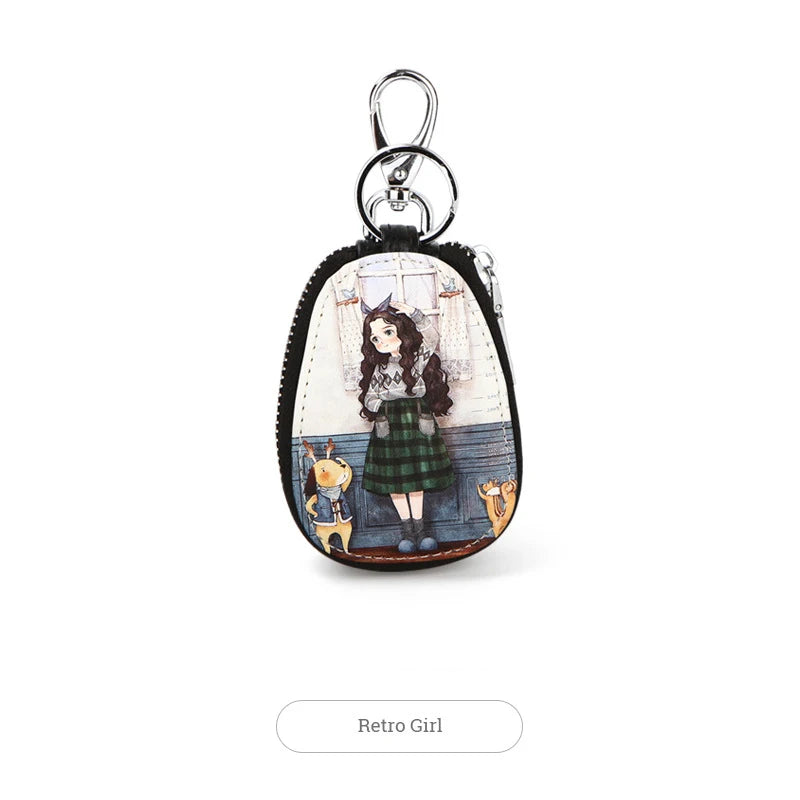 Cat Painted Key Bag Women Pu Leather Key Wallets