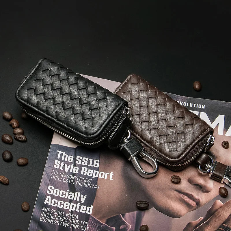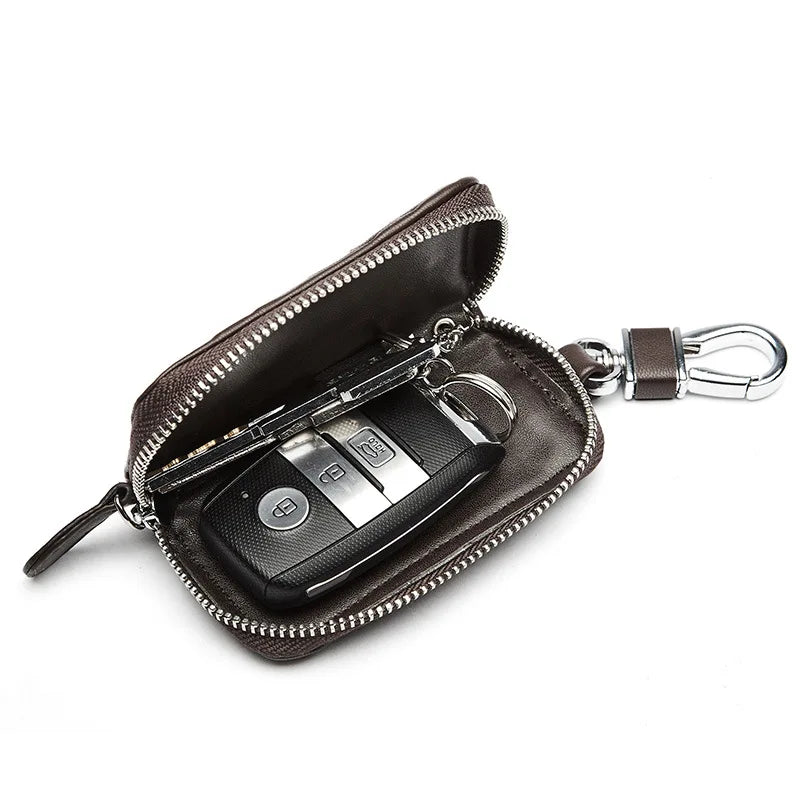 Cow Leather Car Key Wallet Zipper Key Case Male Female Housekeeper Holders