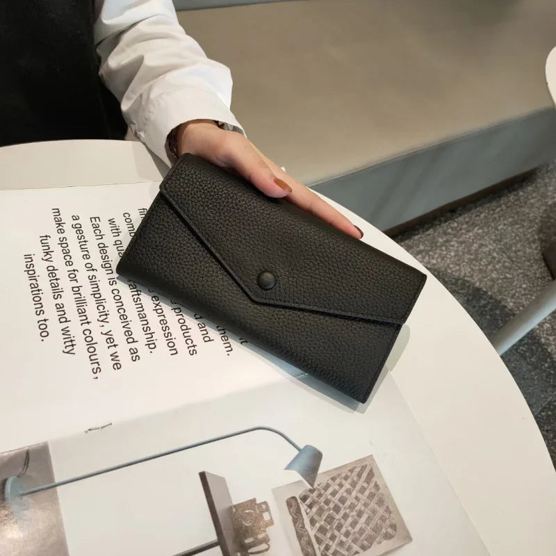 Cow Leather Long Wallet Womens Functional Flap Over Wallet