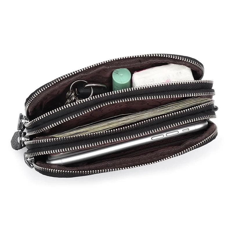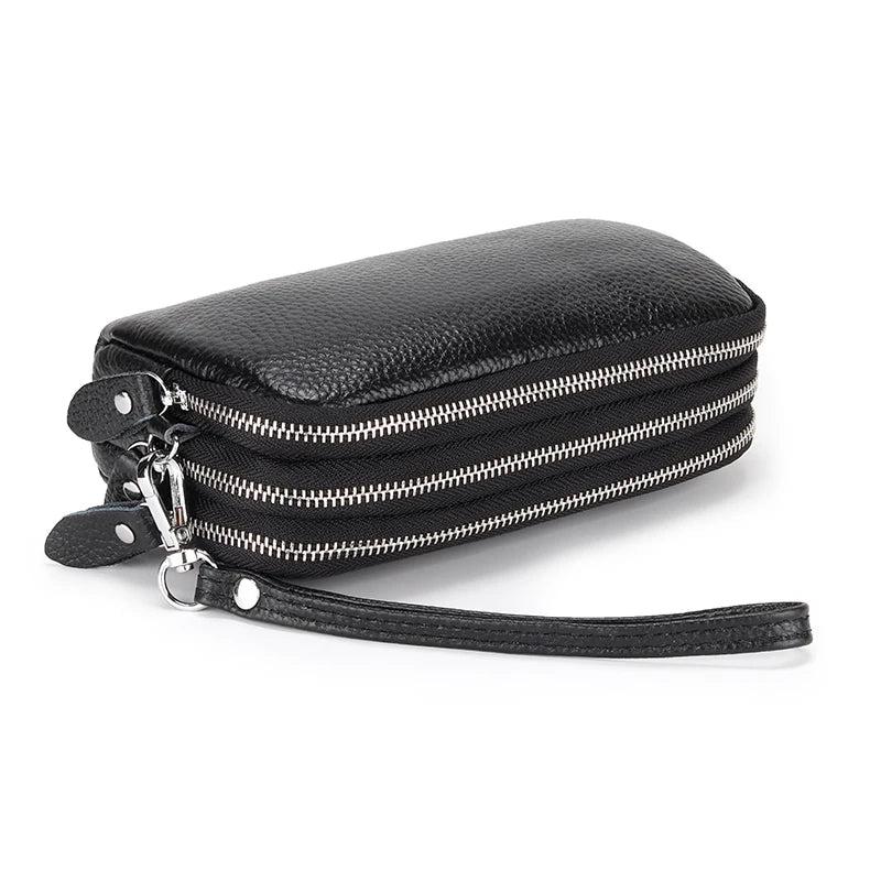 Cow Leather Three Zipper Lining Women Clutch Wallet Large Capacity Female Purse
