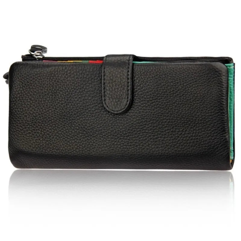 Cow Leather Women Clutch Wallet Long Zipper Purse For iPhone 8