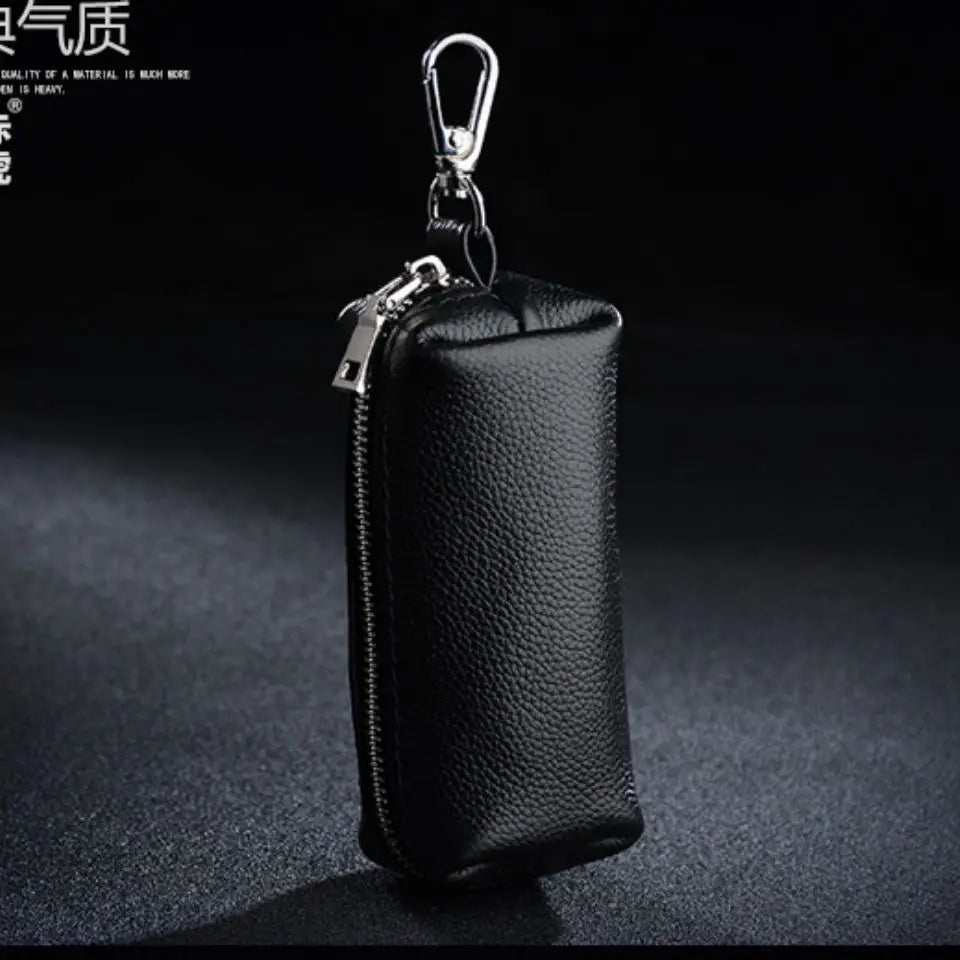 This key case is crafted from genuine cow leather and features a zipper closure. It is designed to hold keys and keep them organized.