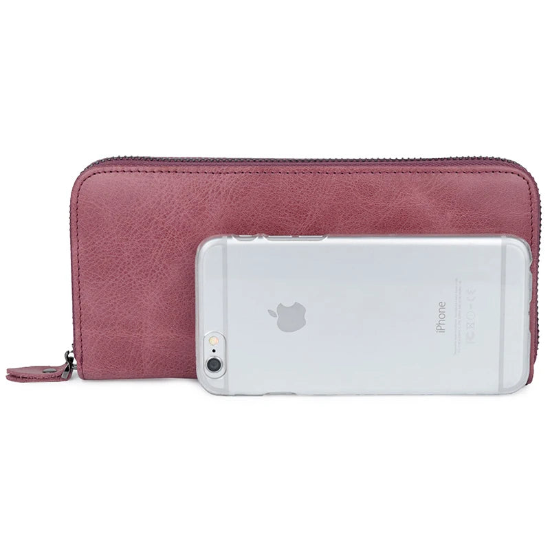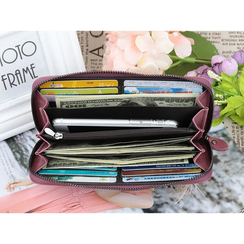 Cowhide Leather Women Zipper Purse Long Oil Wax Leather Vintage Women Wallets