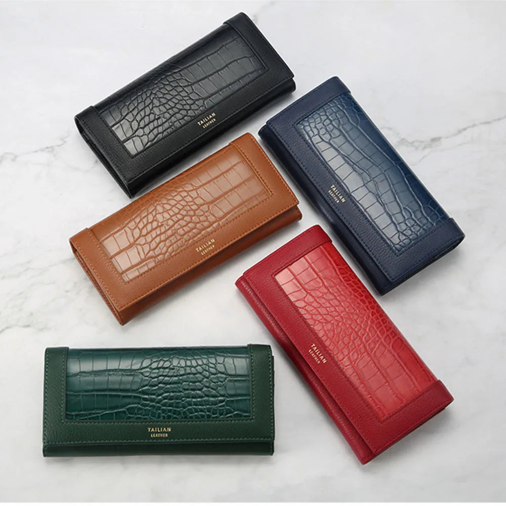 Stay organized in style with this multifunctional wallet clutch featuring a chic crocodile pattern design.