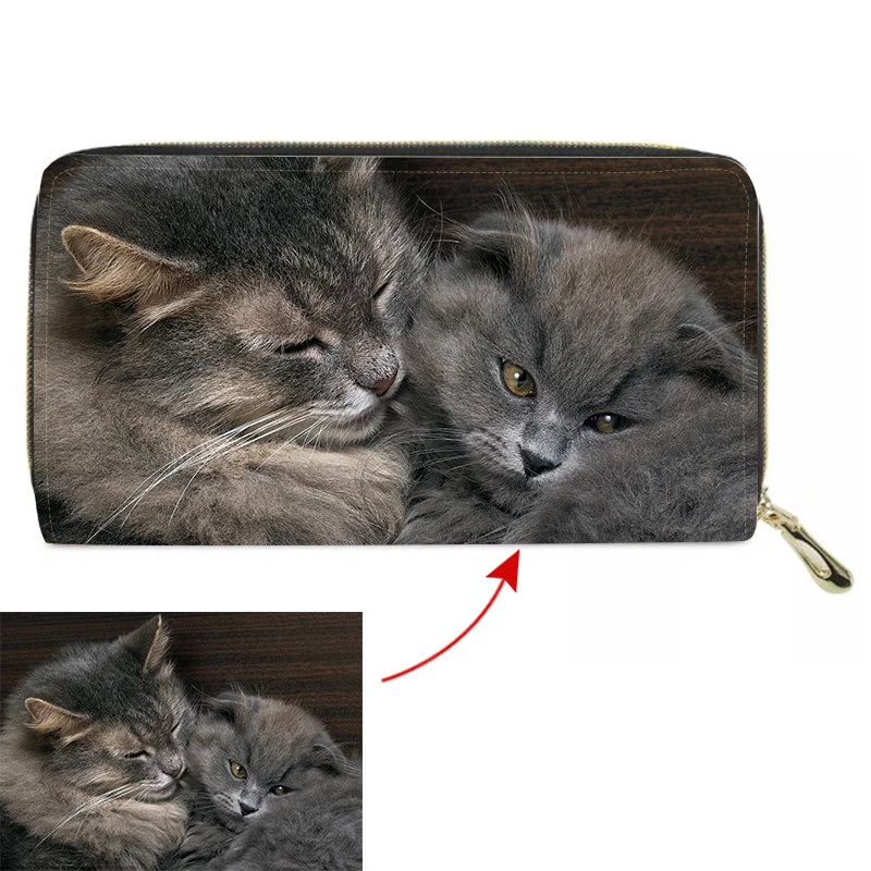 Design your own personalized long wallet featuring a photo print of your beloved pet. This zipper clutch bag is perfect for pet lovers.