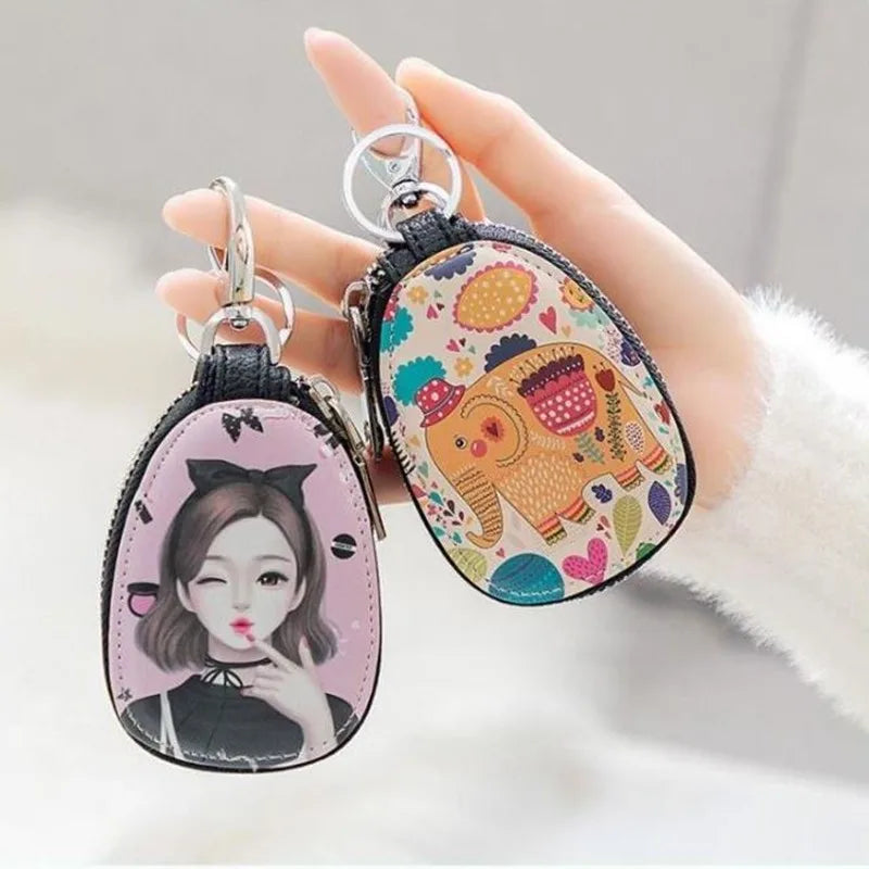 Adorable cartoon style key bag made of quality leather, ideal for girl students.