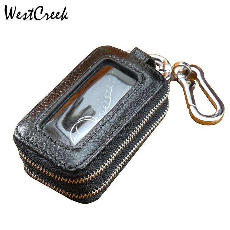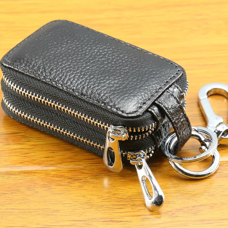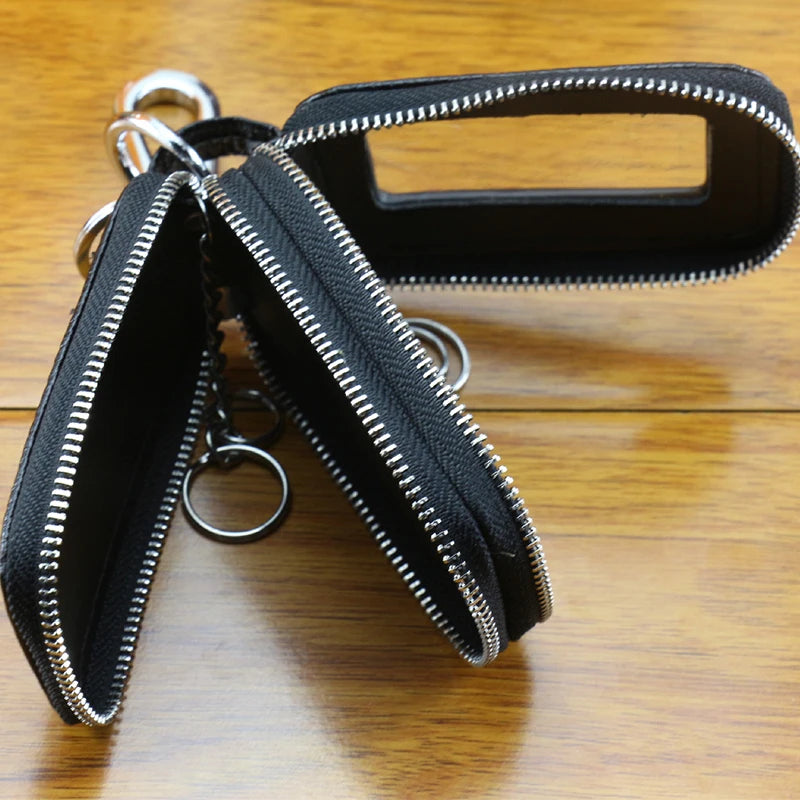 Double Zipper Leather Car Key Wallets Key Holder Keychain