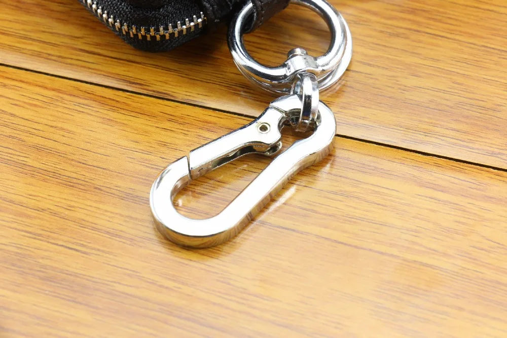 Keep your keys organized and secure with this double zipper key wallet. Made of high-quality leather, it is durable and stylish. Perfect for men and women who prefer a minimalist design.