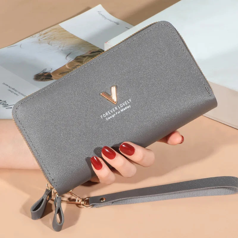 This women's wallet features a double zipper design, providing ample space for your essentials. It includes multiple compartments for cards, cash, and a dedicated slot for your mobile phone. Made of high-quality materials, this wallet is both stylish and functional.