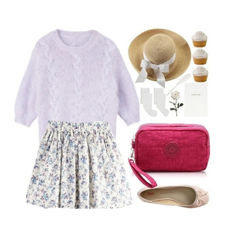 FGGS Women Small Wallet Phone Purse Three Zippers Portable Make Up bag