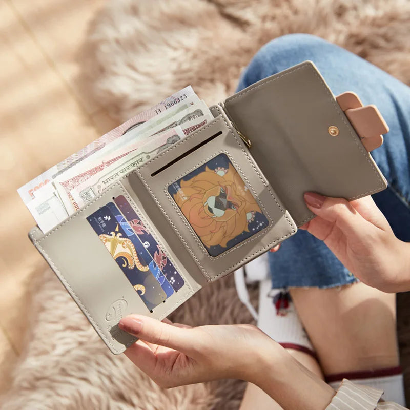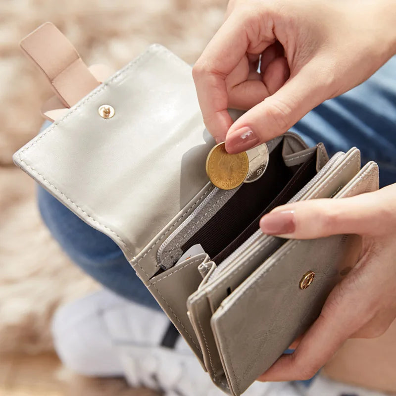 This stylish flower short wallet is made of PU leather, perfect for women to carry cards, money, and other essentials. It features a beautiful floral design that adds a touch of elegance to your accessories.